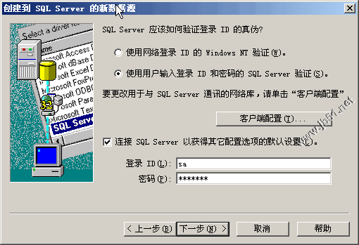 第五步:進行數據庫的IP地址和SA賬號的設置。