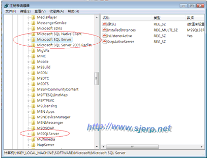 步驟4 :在開始菜單,運行:Regedit 刪除以下分支目錄: HKEY_CURRENT_USER/Software/Microsoft/Microsoft SQL Server HKEY_LOCAL_MACHINE/SOFTWARE/Microsoft/Microsoft SQL Server HKEY_LOCAL_MACHINE/SOFTWARE/Microsoft/MSSQLServer HKEY_LOCAL_MACHINE/SOFTWARE/Microsoft/SQLXML4 如圖: