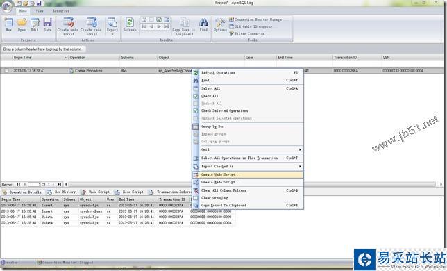 表格列出之前進(jìn)行的操作,在進(jìn)行誤操作的行上點(diǎn)擊鼠標(biāo)右鍵會(huì)出現(xiàn)很多菜單,“Create Undo Script”就是創(chuàng)建一個(gè)恢復(fù)腳本: