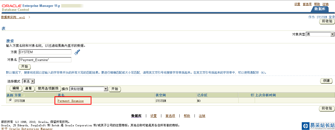 在oracle em里面查看剛才導出的數據表及數據