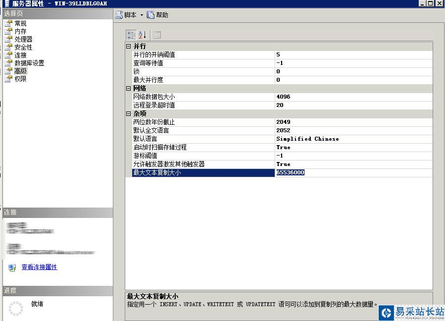 1、將 服務器 -> 屬性 -> 高級將中 最大文本復制大小 改大一點。最小加兩個0