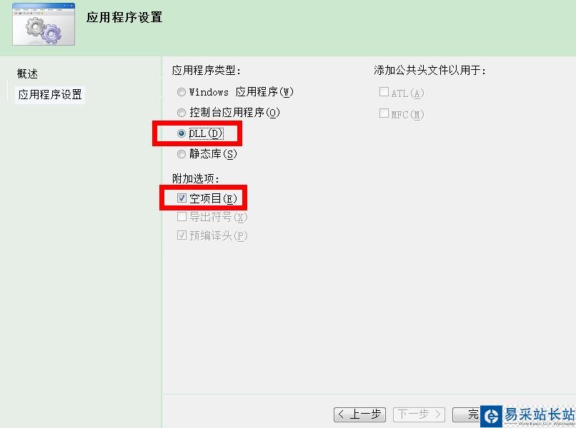 1.2 再點確定-->下一步 : 選擇DLL , 空項目