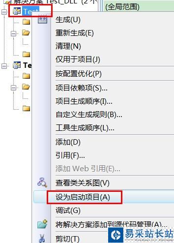 2.3 在工程Test右鍵-->設置為啟動項,這樣我們就能啟動Test來測試我們編譯的dll了 ^_^