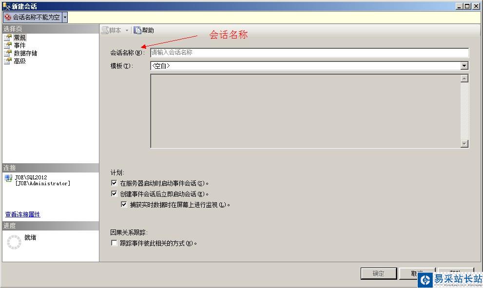 下面有一些選項,例如在服務器啟動時啟動事件會話,你可以根據自己實際情況進行勾選