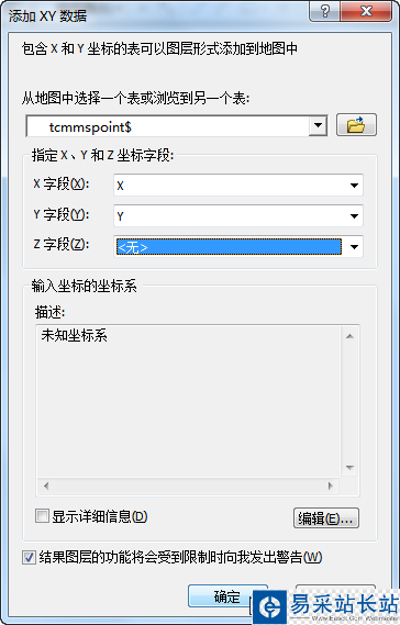 選擇上一步得到的XLS數據文件,并分別指定X字段、Y字段所對應的坐標字段。