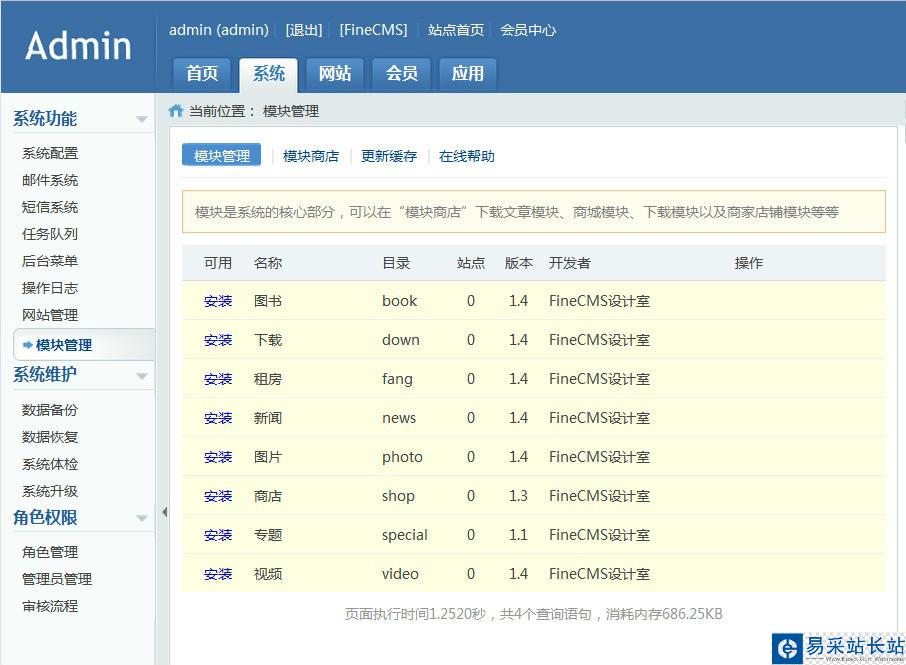 8、在網(wǎng)站后臺(tái)的系統(tǒng)--模塊管理里面,下載模塊。