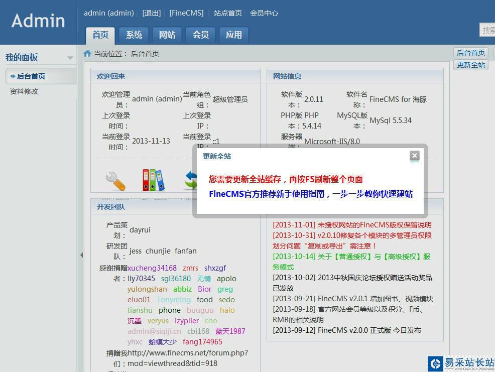 6、設(shè)置完了個(gè)人的數(shù)據(jù),先進(jìn)入網(wǎng)站后臺(tái)。