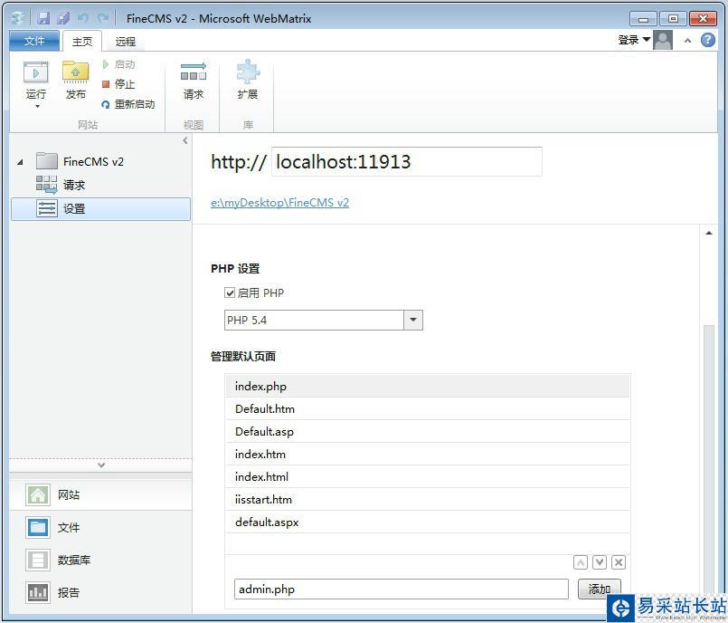 第四步,啟動(dòng)webmatrix3,配置FineCMS網(wǎng)站。