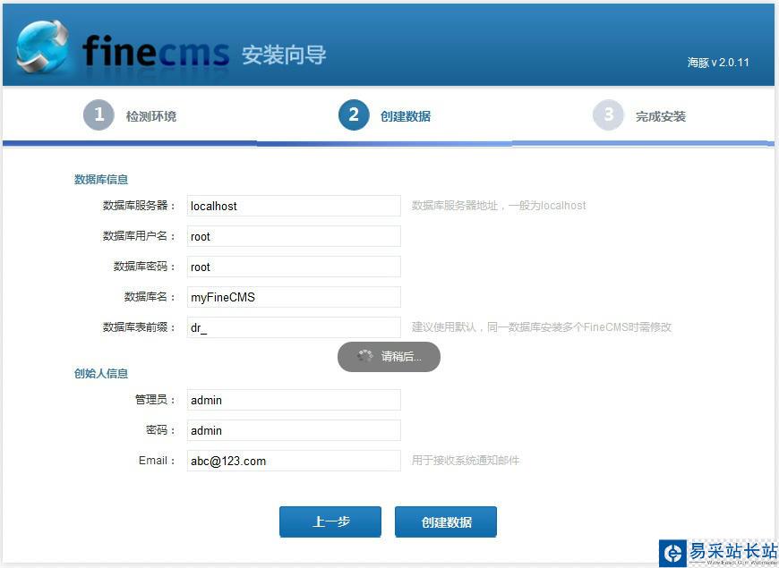 5、點(diǎn)擊url,進(jìn)一步配置FineCMS系統(tǒng)。