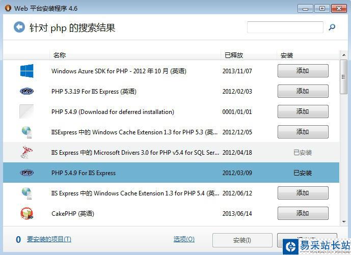 在開(kāi)始程序里打開(kāi)Microsoft Web Platform Installer,繼續(xù)在這個(gè)web平臺(tái)上查找并下載php軟件。