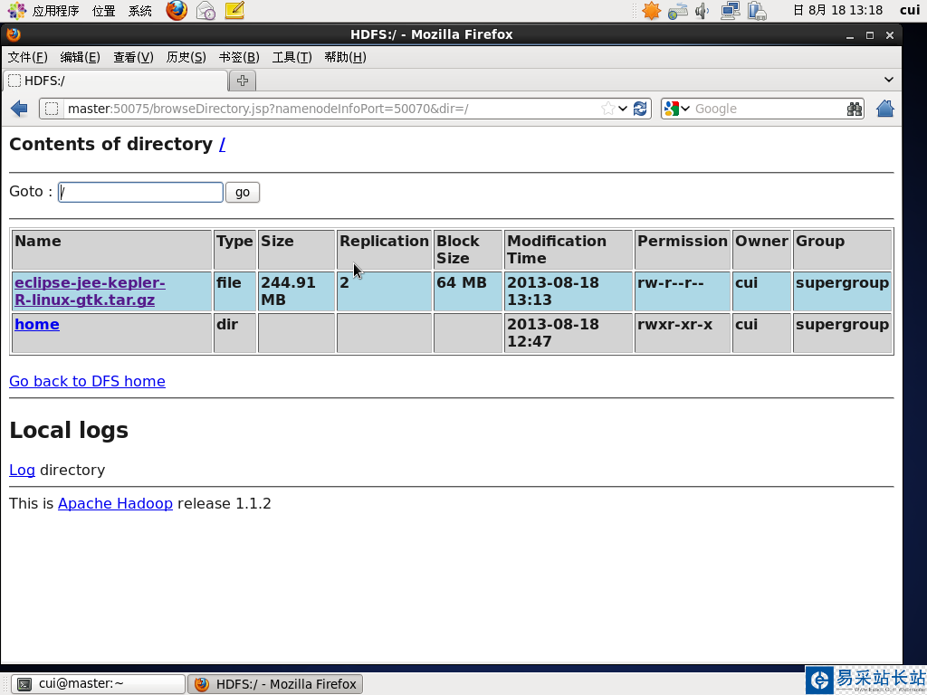 內(nèi)容:想hadoop文件系統(tǒng)中上傳一個(gè)大文件,驗(yàn)證文件分別分布在192.168.1.241節(jié)點(diǎn)和192.168.1.242節(jié)點(diǎn)上。