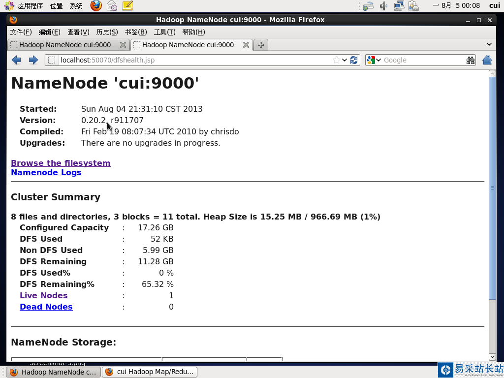 在瀏覽器中輸入:http://localhost:50070,打開頁面