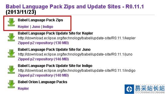 我們以Eclipse的中文漢化包插件為例,先到官方提供的漢化包地址下載一個:http://www.eclipse.org/babel/downloads.php ,注意選好自己的Eclipse版本: