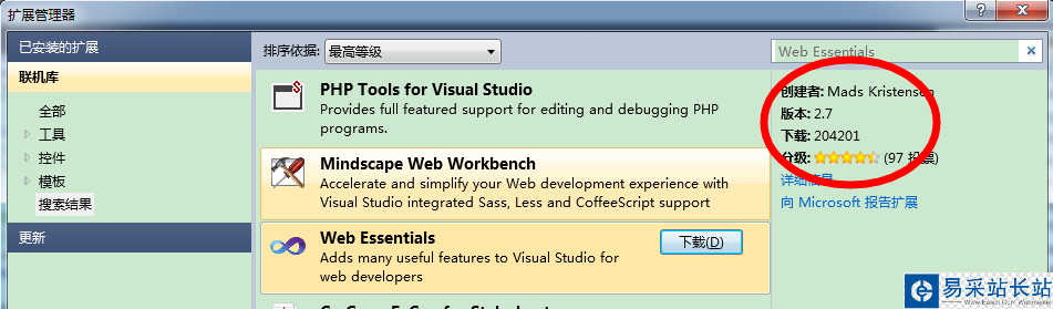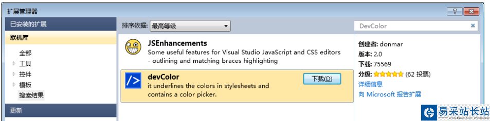 同樣這款工具可以通過(guò)VS的擴(kuò)展管理器直接獲得:
