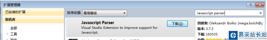 由于最近寫(xiě)的JavaScript稍微多了一點(diǎn),然后在查看的時(shí)候就很不方便,總是要拖動(dòng)滾動(dòng)條來(lái)查找。于是就想著這JavaScript代碼能否像在C#代碼一樣可折疊呢?這款工具可直接通過(guò)VS的擴(kuò)展管理器中進(jìn)行下載,如下所示:
