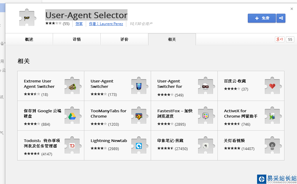 User-Agent Selector地址:https://chrome.google.com/webstore/detail/user-agent-selector/fnbmdojpgjpmjjmnjdnbobcdhenmmgod/related