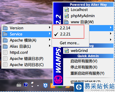 托盤圖標左擊 -> PHP -> Version中切換不同的php版本了。