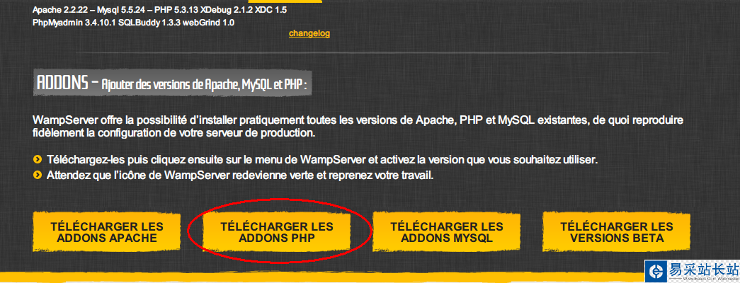 托盤圖標左擊 -> PHP -> Version -> 選擇Get more...->打開網(wǎng)頁后,就能看到以下截圖: