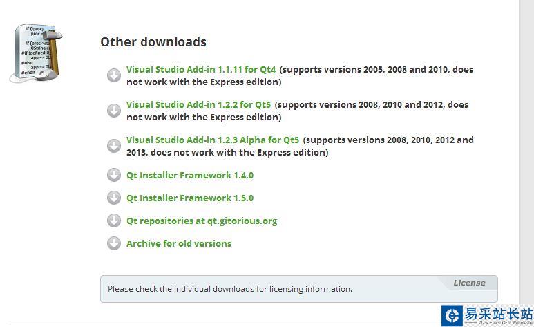 QT安裝包和QT插件下載鏈接:http://qt-project.org/downloads