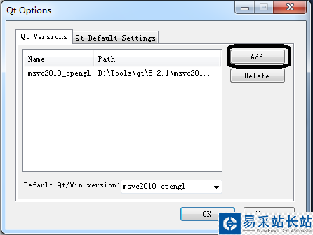 點擊add,找到你的qt安裝目錄,找到5.2.1/msvc2010_opengl這個文件夾。比如我的是D:/Tools/qt/5.2.1/msvc2010_opengl