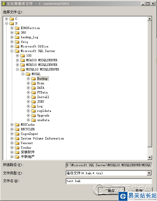 注意文件名記得加后綴.bak,便于恢復(fù)時(shí)的查找