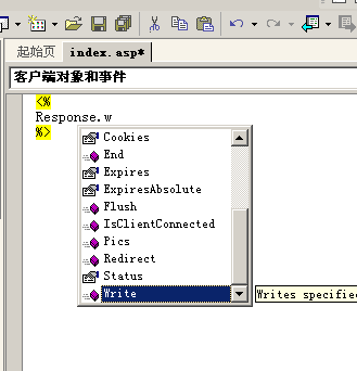 把現成的代碼全部刪除,因為這個是VS自動生成的,當中有些代碼是用于asp.net的。然后你就可以自由編寫你的ASP頁面了。 在編寫代碼的時候,VS會提供一些自動完成功能,很方便的。