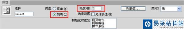 7. “高度”項:指定列表要顯示的行數。size屬性。