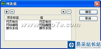 9. “列表值”按鈕:點擊“列表值”按鈕添加列表選項,出現“列表值”對話框,如下圖所示: