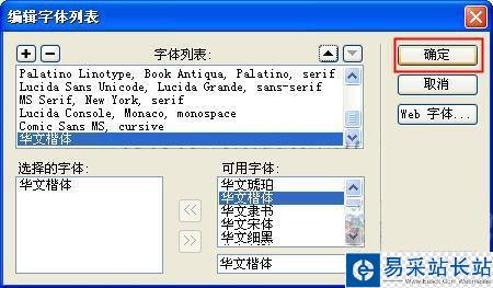 將字體樣式移到字體列表中后,按“確定”按鈕即可。