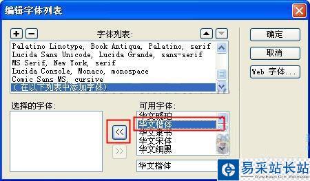 打開“編輯字體列表”,我們可以選擇某些字體,并將它們移到字體列表中,如下圖所示。