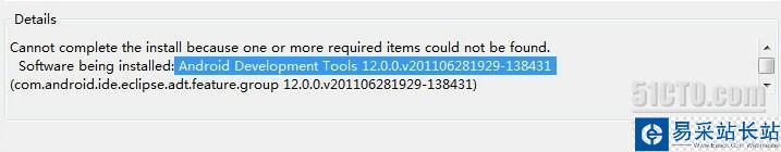 Android DDMS , Android Hierarchy Viewer 和 Android Traceview都已成功的安裝,但Android Development Tools 安裝出現錯誤,錯誤提示如下: