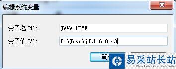 注:JAVA_HOME是指明JDK路徑,就是剛剛安裝時所選的路徑 D:/Java/jdk1.6.0_43 此路徑下包括lib,bin,jre等文件夾。