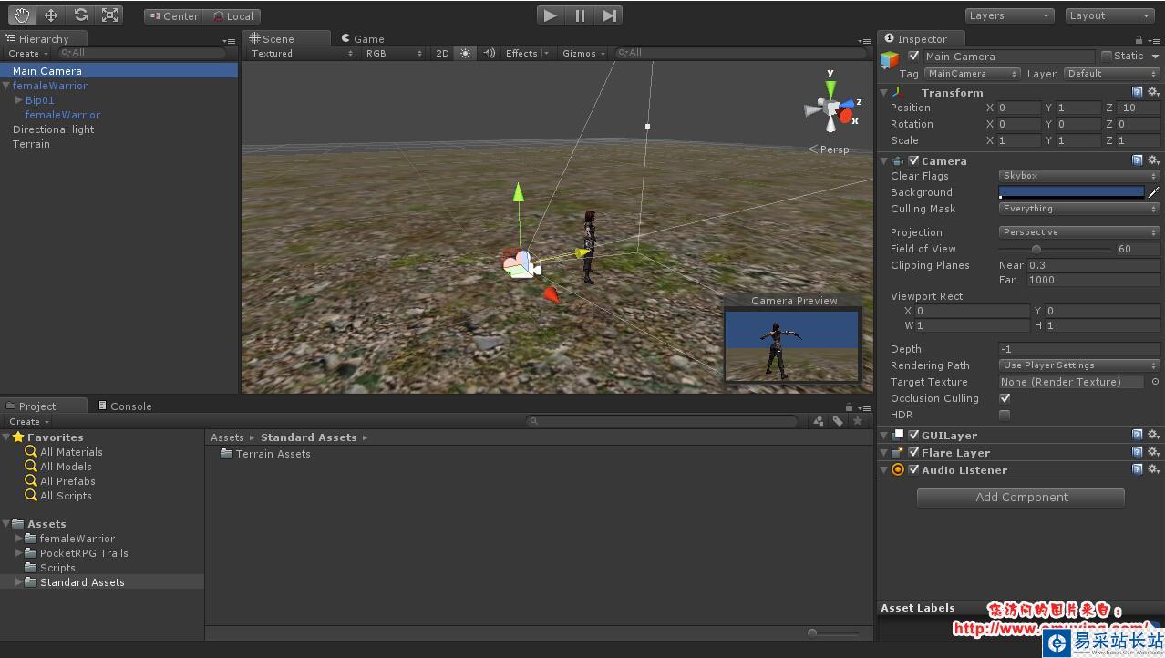 《魔獸世界》,本人最喜歡的網絡游戲,如果你玩過戰士,你一定對戰士的沖鋒非常熟悉,現在接觸 Unity3D,因為最近用到了刀光、拖尾特效,所以就想做一個類似戰士的沖鋒效果,在本場景用到的拖尾效果可以查看我的另一篇文章,里面有詳細的介紹,刀光效果來自 Unity3D Assets 商店,只是把原作者的例子代碼整理了一下,變得非常簡單實用的類。