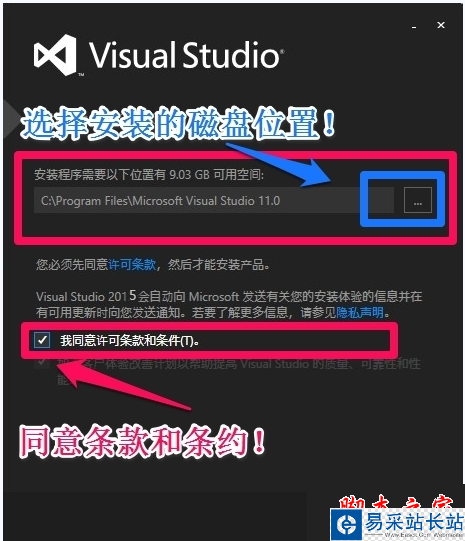 4.稍等片刻。。。。選擇安裝的磁盤位置,并同意條款和條約!然后單擊【下一步】安裝繼續!