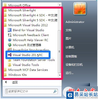 8.安裝成功后,程序自動在開始菜單創建 Visual Studio 2015的所有程序組: