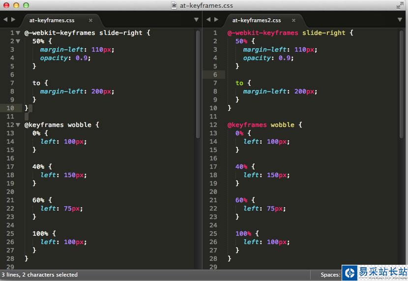 嗯是的,就是CSS3,默認安裝的Sublime Text對CSS3的支持讓人抓狂,幀動畫?別開玩笑了你只會看到一片白色的純文本一樣的代碼。事實上不光CSS3,我建議用CSS3 Package完全替代原來的CSS Package來完成語法高亮。