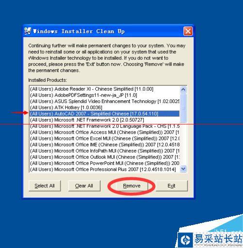 5、安裝完成后,打開,看到cad2007,點(diǎn)擊,然后remove!就ok啦~