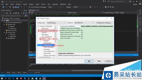 6、工程設(shè)置窗口如圖所示,按照步驟來,先選擇“Configuration Properties”,再選擇“C/C++”,再選擇“Preprocessor”