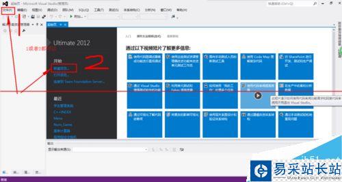 1、首先打開vs2012,如圖所示,點擊文件-->新建-->項目,或者直接點擊【新建項目】。