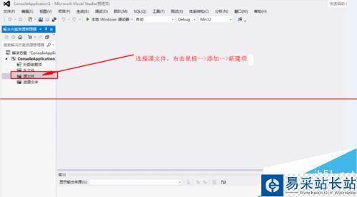 5、如圖所示,選擇源文件,右擊鼠標-->添加-->新建項。