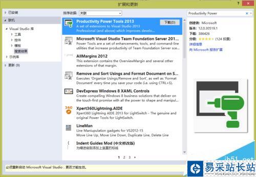 3、搜索結果如下圖,第一項就是“Productivity Power Tools 2013”,點擊它,選中項上會出現"下載按鈕",點擊下載,再次進入等待。