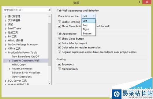 Visual Studio選項卡在頂部顯示時,文件稍多的時候在選項卡之間切換時就稍顯麻煩。為了使用Visual Studio開發式更順手,把選項卡移動到左邊顯示一列會更方便一些。