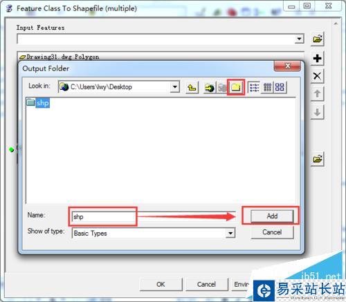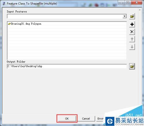 2、雙擊彈出窗口,選擇所需要輸入的要素;輸出路徑,可以新建一個文件夾存放相應的路徑,完成之后單擊ok。