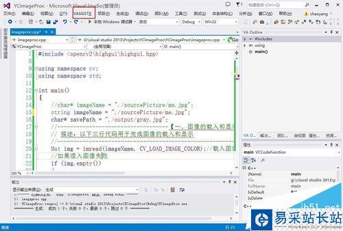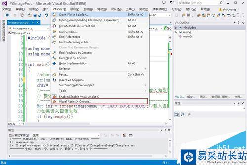 1、打開VS2013,在菜單欄中找到“VASSISTX”助手的插件工具,如下圖所示,選擇此選項