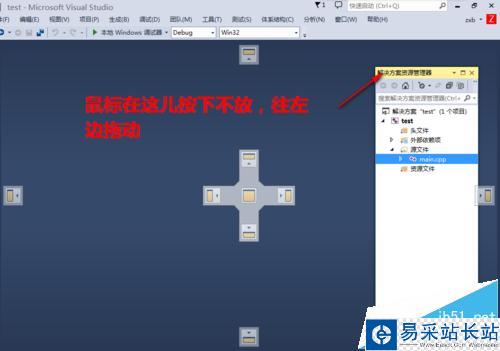 2、在解決方案資源管理器左上角按下鼠標左鍵不放,往左拖動。