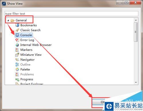 6、如果想通過選擇的方式,點擊General一般性,展開文件夾,在文件夾內(nèi)就可以看到Console,點擊選擇之后,點擊Ok即可進行保存。