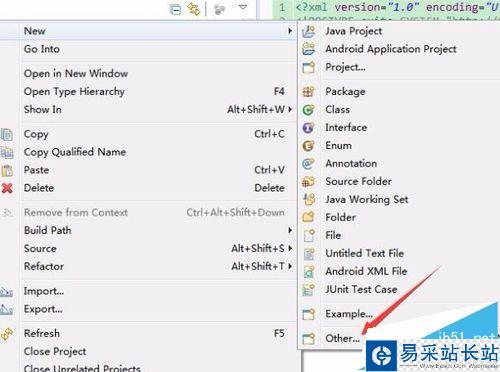 1、在eclipse中已經(jīng)創(chuàng)建好的java的項(xiàng)目中,進(jìn)行選中該項(xiàng)目之后,進(jìn)行右鍵的方式彈出進(jìn)行選擇“new”選項(xiàng)。