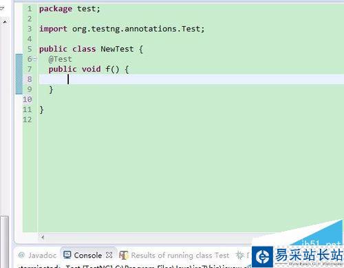 5、創(chuàng)建完成之后,進(jìn)行打開文件的class的文件,可以看是java代碼中就為一個(gè)測(cè)試類,一個(gè)測(cè)試類的模板。