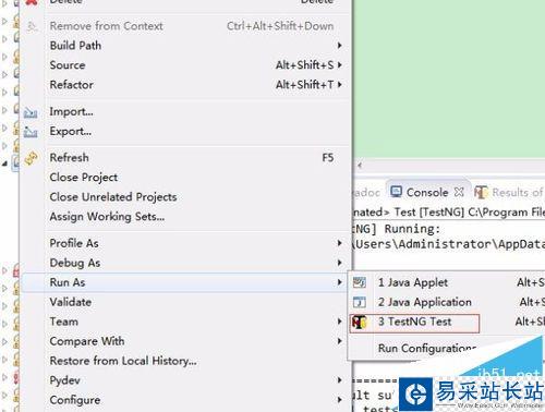 6、可以通過執(zhí)行testng的測(cè)試類,選中整個(gè)的項(xiàng)目,進(jìn)行右鍵的方式,彈出了一個(gè)下拉中進(jìn)行選擇為“Run As”選中,在次選擇為TestNG Test的選項(xiàng)。