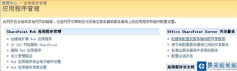然后就是對SharePoint中爬網(wǎng)的設置,進入管理中心,可以看到上面創(chuàng)建的共享服務程序: